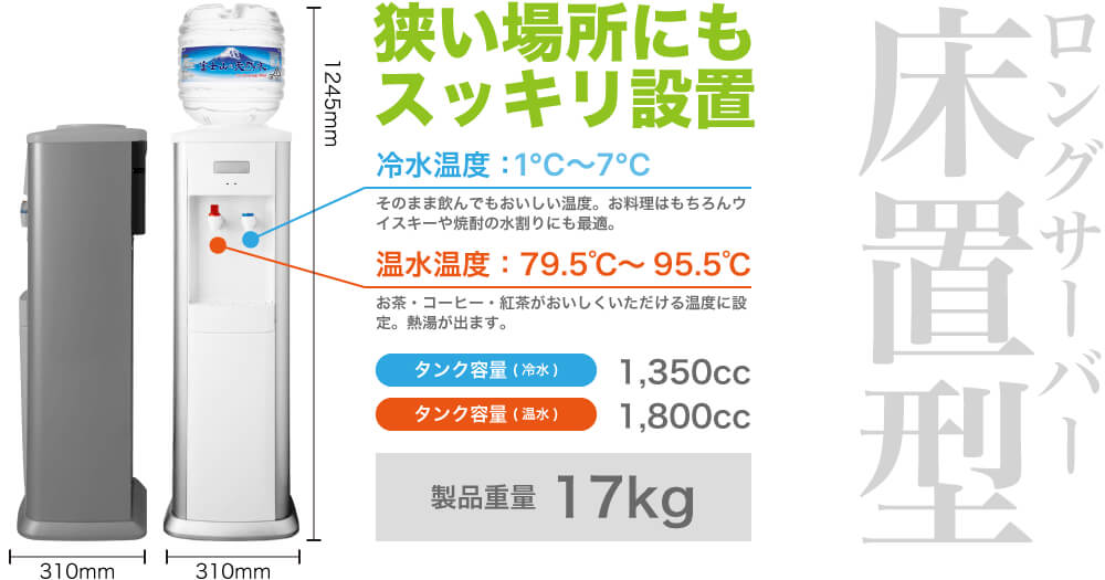| サイズ(ボトル含む) | 幅310mm x 奥行310mm x 高さ1245mm |
